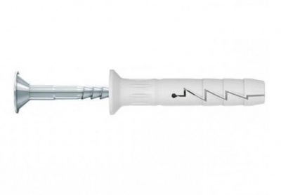 Дюбель-гвоздь предназначен для крепления в бетон, керамический полнотелый кирпич, ячеистый бетон, клинкерный кирпич и натуральный камень. Поставляется в комплекте со стальным гальванически оцинкованным шурупом. Применяется в сухих помещениях. Гвоздь с резьбой забивают в дюбель при помощи молотка.